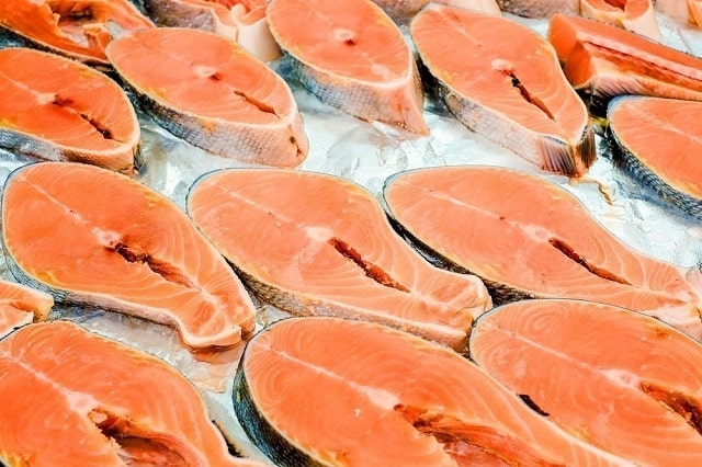 Na trzích a v supermarketech si můžete koupit červené ryby různých druhů. Jeseteři jsou dražší než lososovité ryby.