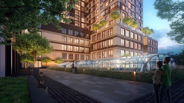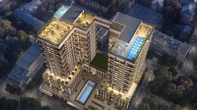 Здание сооружается возле станции метро «Научная» и будет состоять из двух 22-этажных башен, на первых 7-ми этажах которых будет располагаться бизнес-центр. Башни между собой соединяются переходным крытым мостом. В комплексе предусмотрено все для комфортного проживания. В нем будут SPA-центр, магазины, детский сад, 2-уровневый подземный паркинг, на крыше предусмотрены кинотеатр, панорамная площадка, зона барбекю, бассейн под открытым небом и т. д. Все этажи оснастят системами энергосбережения, пожарной безопасности, автоматического реагирования на аварийные ситуации. Управлять ими жители смогут со смартфона. Запланирована 3-уровневая система охраны с круглосуточным видеонаблюдением.