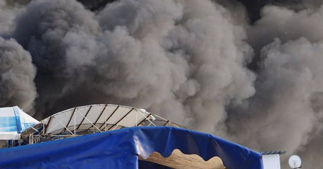 Сообщается, что вчера, во второй половине дня, российские оккупанты произвели массированный обстрел территории рынка. Одновременно в разных местах загорелись торговые павильоны. Огонь вскоре перекинулся на жилые дома, расположенные рядом с рынком. Общая площадь пожара составила около 7 га. На место происшествия выехали почти 100 пожарных и 21 единица техники. Ценой неимоверных усилий пожарным удалось отсечь огонь в частном секторе и спасти свыше 10-ти домостроений. Два дома частично разрушены огнем.