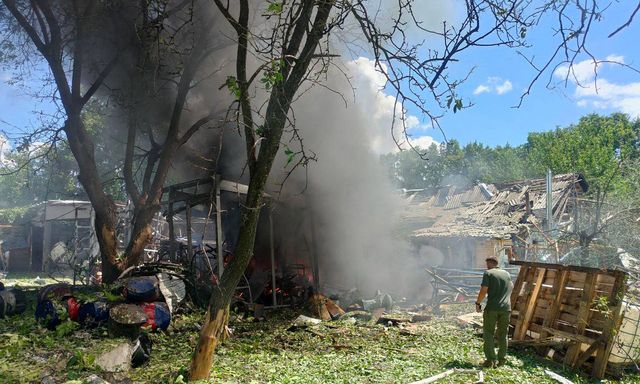 За несколько часов до этого, ночью, под ракетный удар попал Шевченковский район города. Снаряд взорвался между двумя домами, образовав глубокую воронку, частично повреждены строения и детская площадка, расположенные рядом. Погибших и пострадавших в этом районе не оказалось.