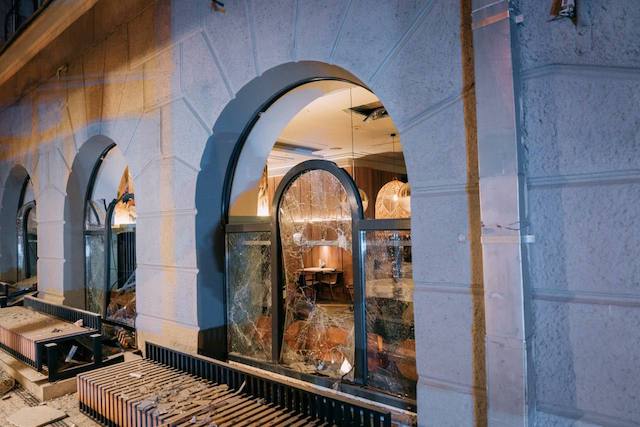 Повреждены десятки многоэтажных жилых домов, детский сад, больницы, кафе, рестораны, магазины, павильоны, система водоснабжения и т. д. Полицейскими взяты под охрану более 50-ти поврежденных помещений.