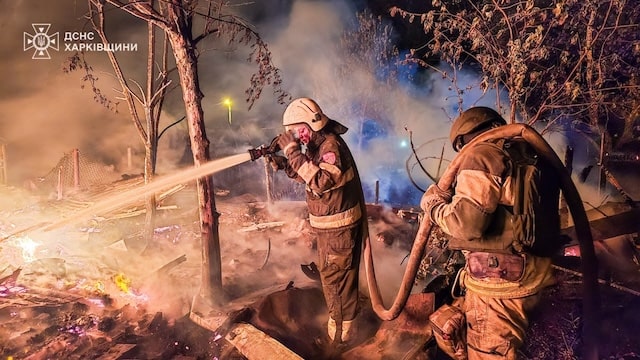 Первый удар был совершен около 22-х часов и затем взрывы раздавались одновременно в нескольких районах областного центра - Шевченковском, Слободском, Салтовском, Немышлянском и Киевском. В результате обстрелов повреждены, по меньшей мере, 93 здания (в том числе, 2 больницы, хоспис, суд, школа, ресторан). Выбито 2 200 окон, 220 стекол балконов, повреждены 13 кровель, 19 дверей, конструктивные элементы в 8-ми зданиях, легковые автомобили, электросети и других объекты гражданской инфраструктуры. На нескольких локациях в разных районах города начались пожары, их зарегистрировано не менее 10-ти.
