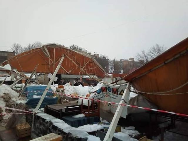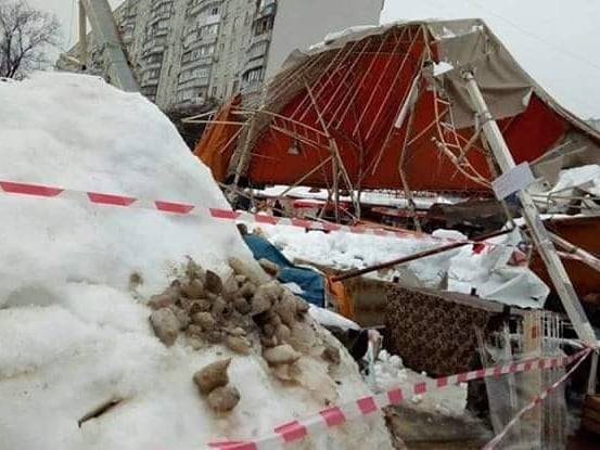 В Харькове под тяжестью тающего снега продолжают обваливаться кровли общественных заведений. Так, очередные происшествия случились на рынке «Сказка» и по улице Ярослава Мудрого. Подробности инцидентов рассказали сегодня, 4 февраля, харьковчане в социальных сетях, где также опубликовали подтверждающие данный факт фотографии.