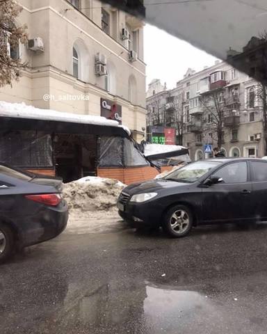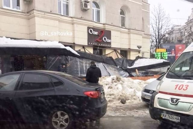 Еще один инцидент произошел с летней площадкой ресторана «One 2 one», который находится по улице Ярослава Мудрого. Там также под тяжестью тающего снега обвалилась крыша помещения.