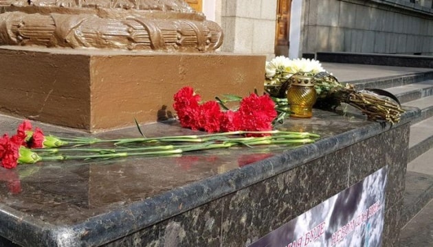 - К зданию национального университета Воздушных Сил Украины им. Кожедуба люди несут цветы, здесь появились плакаты с надписями: «Пилоты не умирают, они уходят в вечный полет и навсегда остаются в небе», «Пусть земля будет небом для них».