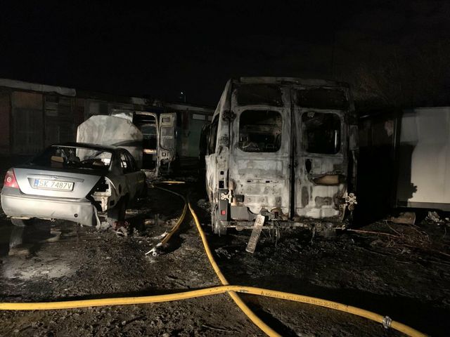 О пожаре на парковке Министерства обороны Украины стало известно около 21.30. К месту событий, сразу после получения сигнала (в 21 час 30 мин.), были направлены пять отделений СЧС, а также два отделения университета ГЗН на автоцистернах. Как оказалось, горели сразу несколько транспортных средств – 4 микроавтобуса («Fiat Ducato», «Mercedes-Benz Sprinter», «Mercedes-Benz Sprinter» и «Peugeot Boxer»), а также легковой автомобиль «Ford Mondeo». К сожалению, все они выгорели полностью и вряд ли подлежат восстановлению. Общая площадь пожара составила 40 кв. метров, его погасили через час. Удалось спасти от уничтожения огнем два микроавтобуса – «Iveco Daily» и «Daciа Sandero».