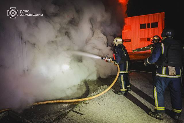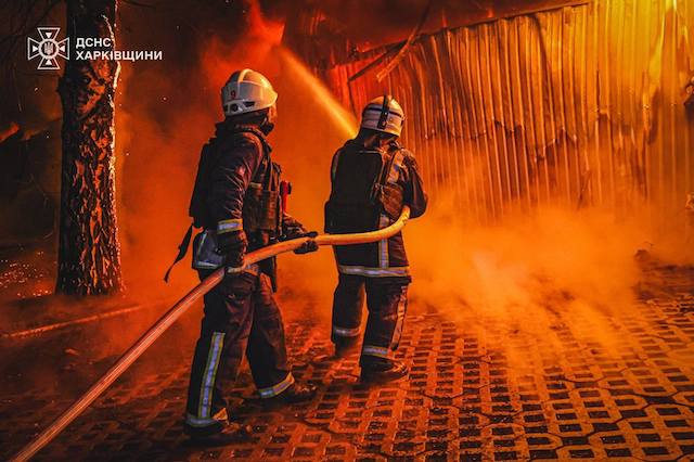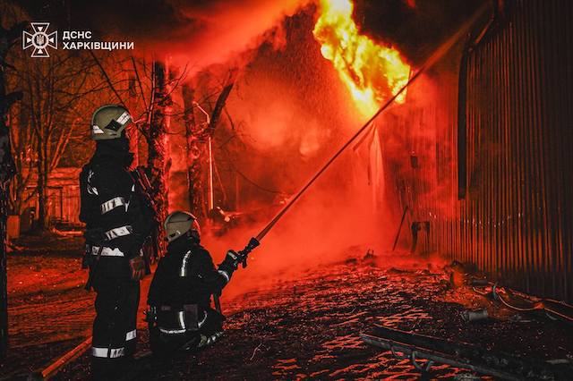 Под обстрелами оказалась гражданская инфраструктура и жилищный сектор. В результате в Харькове были разрушены и повреждены здания, произошло несколько пожаров, сообщили в пресс-службе Главного управления СЧС Харьковской области. Наиболее масштабный пожар вспыхнул в производственном здании. Его площадь достигла 2 500 квадратных метров. Пожары зафиксированы еще в трех местах, в каждом работали подразделения ГУ СЧС, Национальной полиции, медицинской и коммунальных служб. Во время российской атаки один из дронов взорвался рядом с футбольным полем. В это время там шел матч, после падения беспилотника игра была остановлена. Еще один дрон упал в 5-ти метрах от жилого дома, образовалась воронка диаметром около 3-х метров и глубиной до 2-х метров. Взрывная волна значительно повредила фасад жилого 16-этажного дома, пострадали квартиры и балконы, уничтожен один автомобиль и существенно поврежден объект критической инфраструктуры.