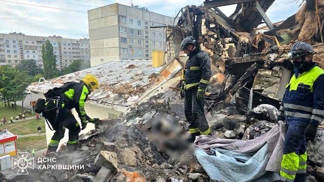 Сразу 4 беспилотных летательных аппарата типа «Герань-2» враг направил на 5-этажный дом в Индустриальном районе города. Беспилотники пробил крышу и верхние этажи. В результате взрывов начались пожары, в одном подъезде загорелись квартиры, расположенные на последнем этаже, в другом - квартиры с первого по четвертый этажи. Рухнули перекрытия дома, под завалами оказались люди. Во время проведения аварийно-спасательных работ удалось спасти из-под завалов молодую женщину и мужчину. По словам городского голова Харькова Игоря Терехова, ранения получили 18 человек, в том числе, шестеро детей.